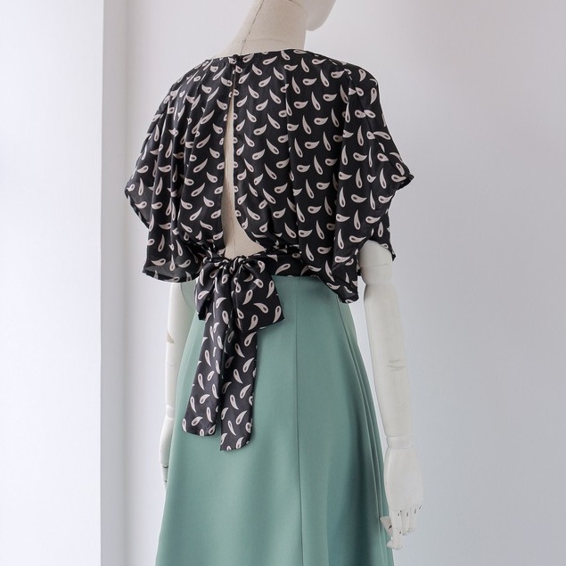 - Áo kiểu form croptop cánh dơi, bản đai eo thắt nơ phía sau tự điểu chỉnh.