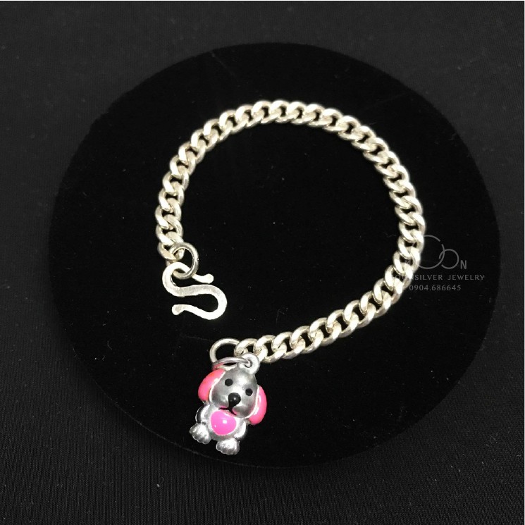 Lắc bạc dây móc dầy charm hình con chó
