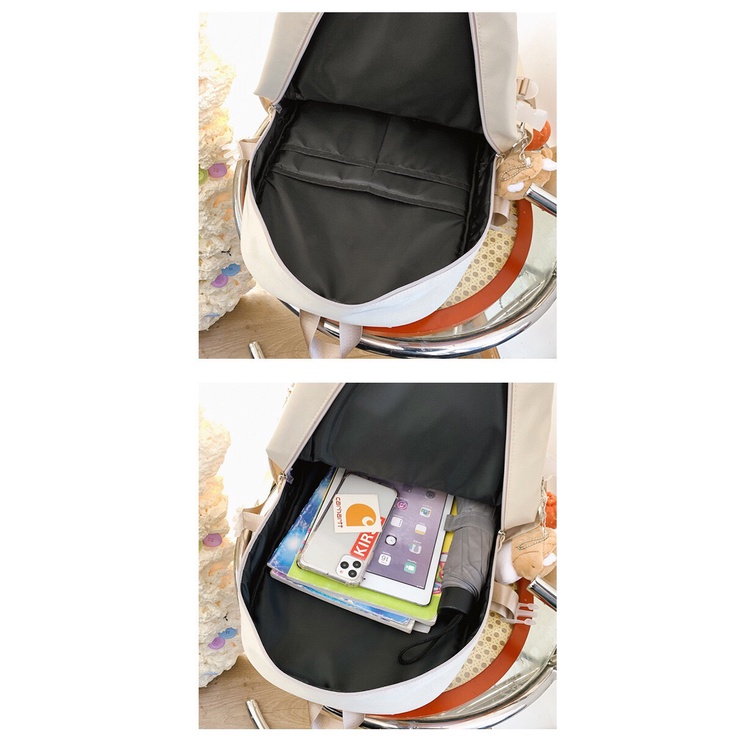 Túi Ví Nữ > Ba lô || Ba lô trong vải canvas tặng kèm sticker và móc khóa gấu bông 933