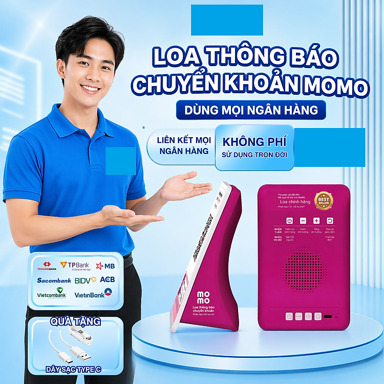 loa thông báo chuyển khoản, loa báo tiền về momo, loa wifi báo chuyển khoản, loa thông báo giao dịch, loa bán hàng thông minh, loa momo wifi, thiết bị thông báo chuyển khoản