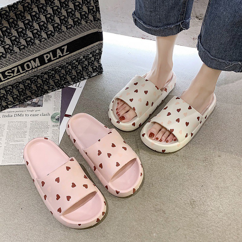 (LOẠI ĐẸP- ĐẾ DÀY)Dép ulzzang quai ngang đế bánh mỳ thời trang nữ in hình trái tim