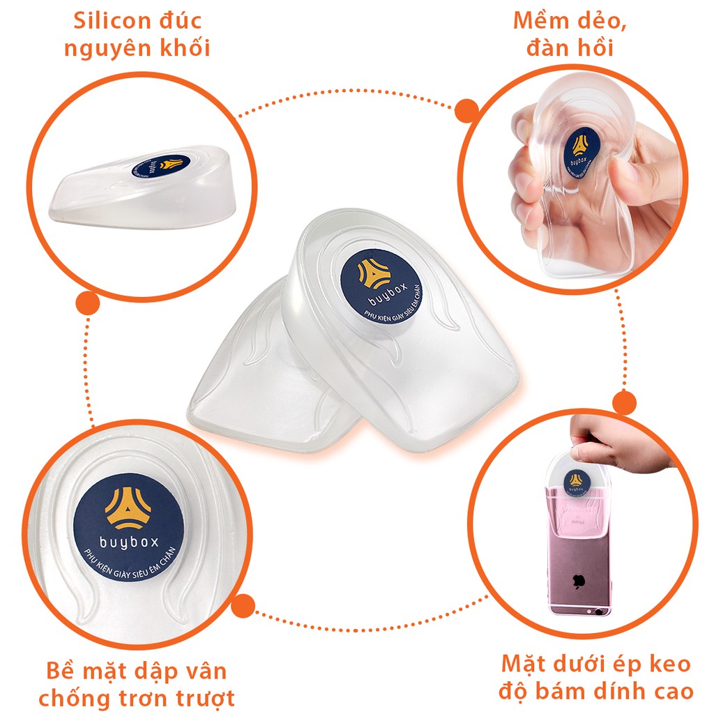 Lót giày độn đế silicon nguyên khối trong suốt buybox sẽ giúp bạn tăng 3 cm một cách tự nhiên và cực đơn giản