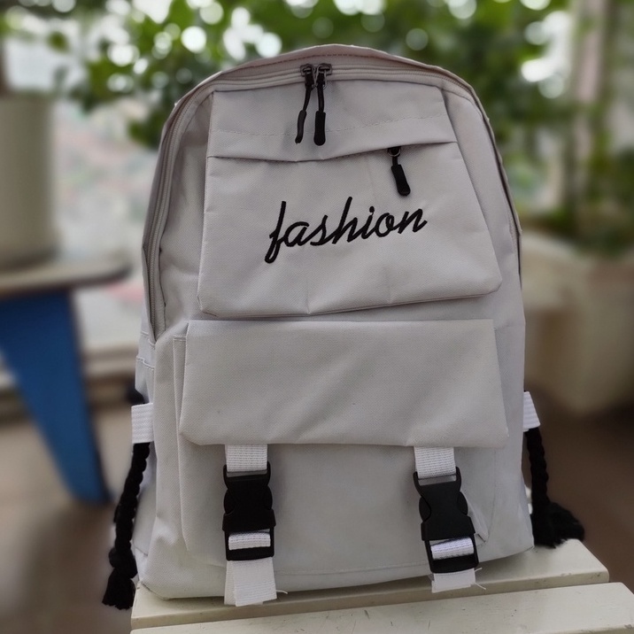 Giới thiệu [THANH LÝ] Balo thời trang, balo đi học nữ giá rẻ có khóa nhựa vải canvas thêu chữ FASHION ảnh shop chụp