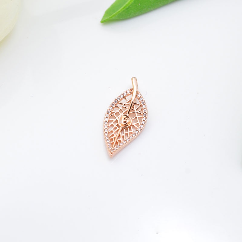 Giới thiệu [M8DB] Phụ kiện trang sức (DIY) - Mặt dây chuyền mặt khay trống hạt Chiếc lá viền nạm đá lấp lánh