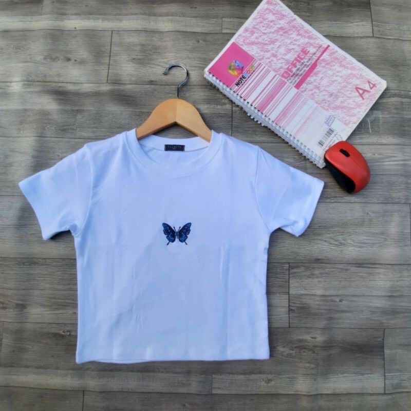 Thời Trang Nữ > Áo > Áo sơ mi || [Mã 151FASHIONSALE1 giảm 10K đơn 50K] Áo croptop thêu bướm cotton 100% (av)