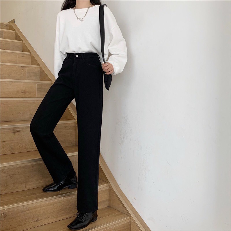 - Tên sản phẩm:Quần kaki jean ống suông trắng đen lưng cao basic hàn quốc Haiquang Mã 405