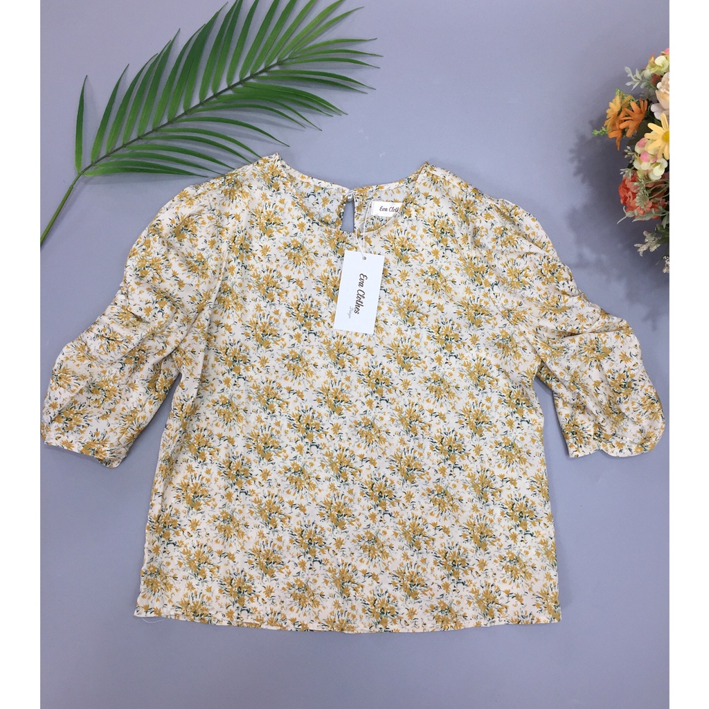 Giới thiệu Áo sơ mi nữ tay lỡ cổ tròn họa tiết hoa nhí kiểu tay chun lỡ EvaLover