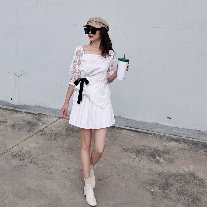 [Mã BMLTA50 giảm 50K đơn 150K] Áo ren trắng Oversized cổ vuông [XL8]