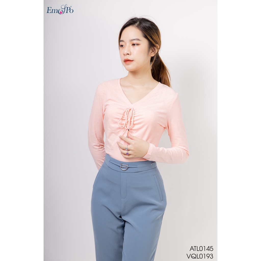 Giới thiệu [Mã LTP50 giảm 50000 đơn 150000] Áo thun nữ dài tay cổ nhún Emspo ATL0145 (Trắng, Hồng)