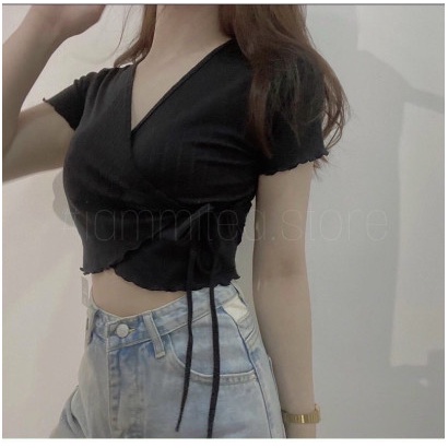 Giới thiệu [MÃ TH6739 GIẢM 20% TỐI ĐA 30K ĐƠN TỐI THIỂU 500K] Áo croptop tay ngắn ôm đắp chéo