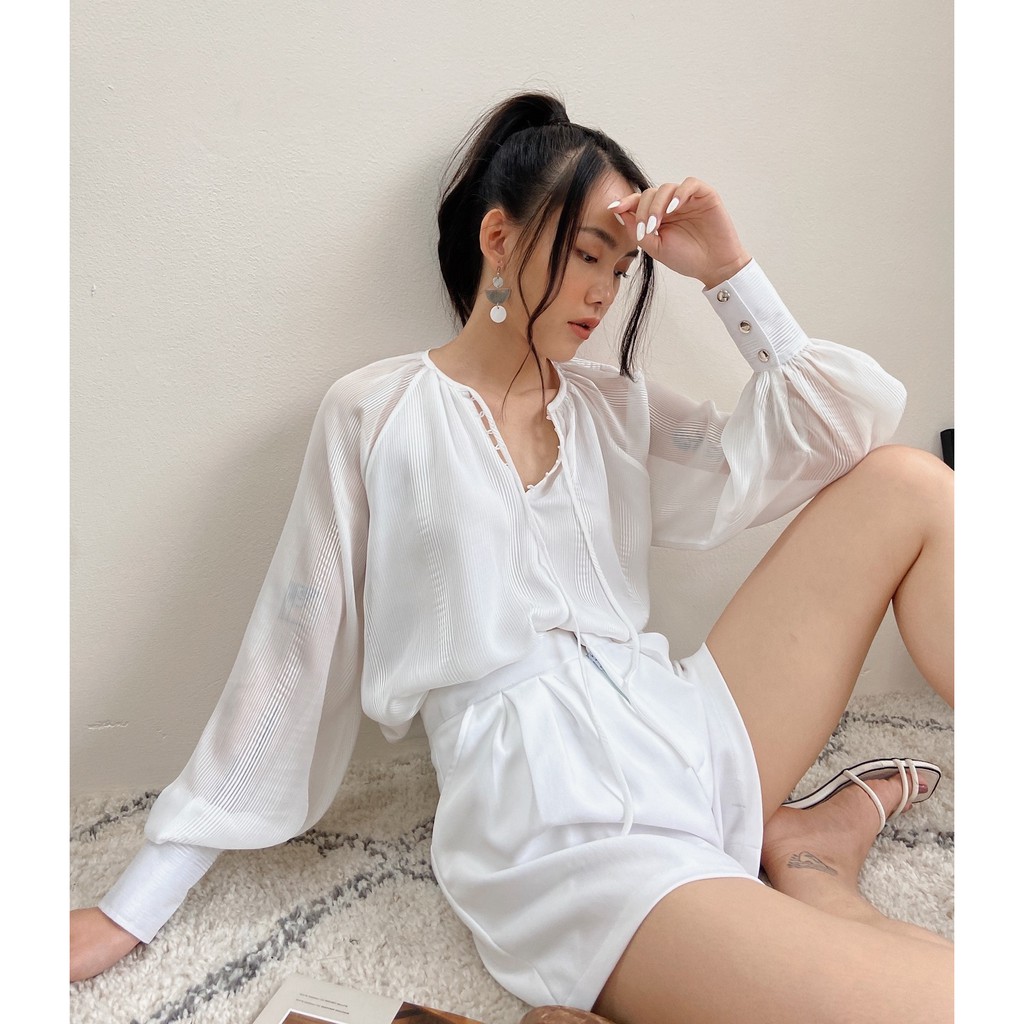 Thời Trang Nữ > Áo > Áo sơ mi || [Mã WABR151A giảm 10% tối đa 30k đơn từ 99k] Áo Kiểu Cổ V Tay Phồng Đính Nút EDINI - A1132 - A1294