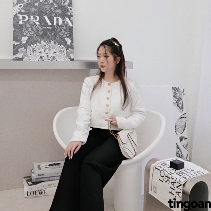 Giới thiệu [Mã WABRTET22 giảm 10% đơn 250K] Áo khoác crop lửng trắng vân hoa tingoan FAIRY STORY JACKET/WH