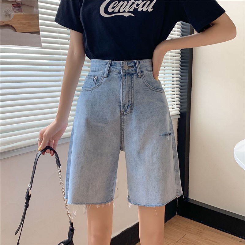 Giới thiệu [ MÃI YÊU EM ] QUẦN JEAN NGỐ LỬNG NỮ RÁCH ĐÙI TRÁI CAO MÀU XANH NHẠT LAI TUA CAO CẤP BABO ĐỦ SIZE S, M, L FORM RỘNG RÃI