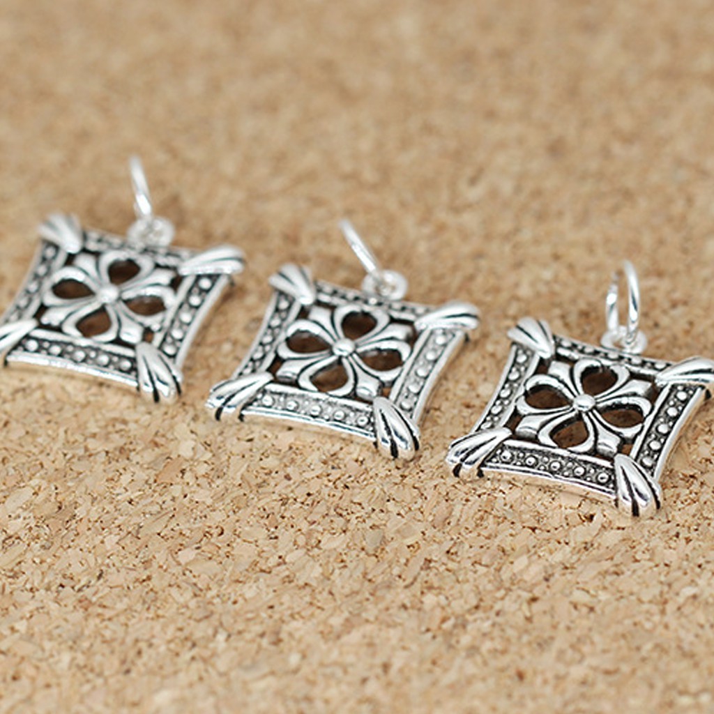 Phụ Kiện Thời Trang > Phụ kiện thêm > Mặt dây chuyền và Charm || Mặt dây chuyền bạc hoa hình vuông
