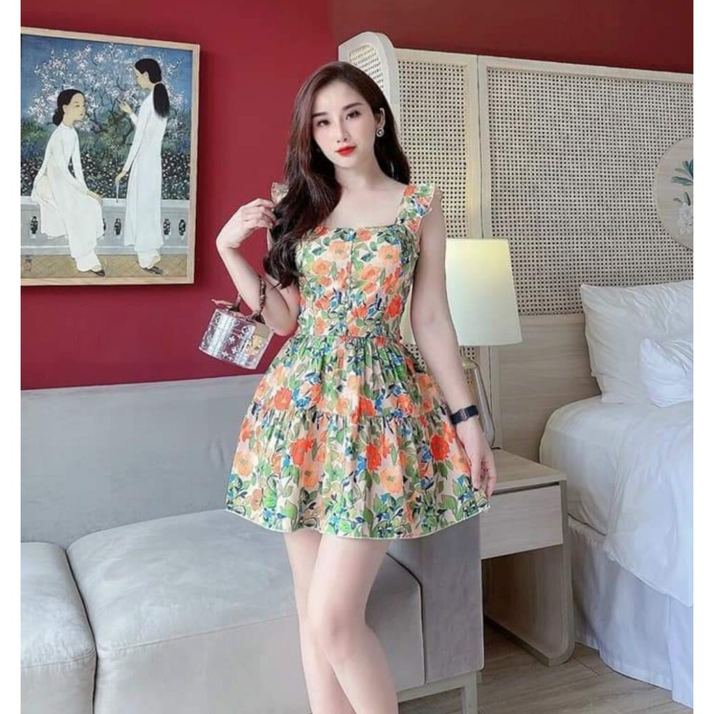Giới thiệu [Mẫu Mới] Sét Áo Hoa Cài Nút Thật Phối Váy Có Lót Trong Thời Trang Nữ Sam Closet Free Size 40-55kg
