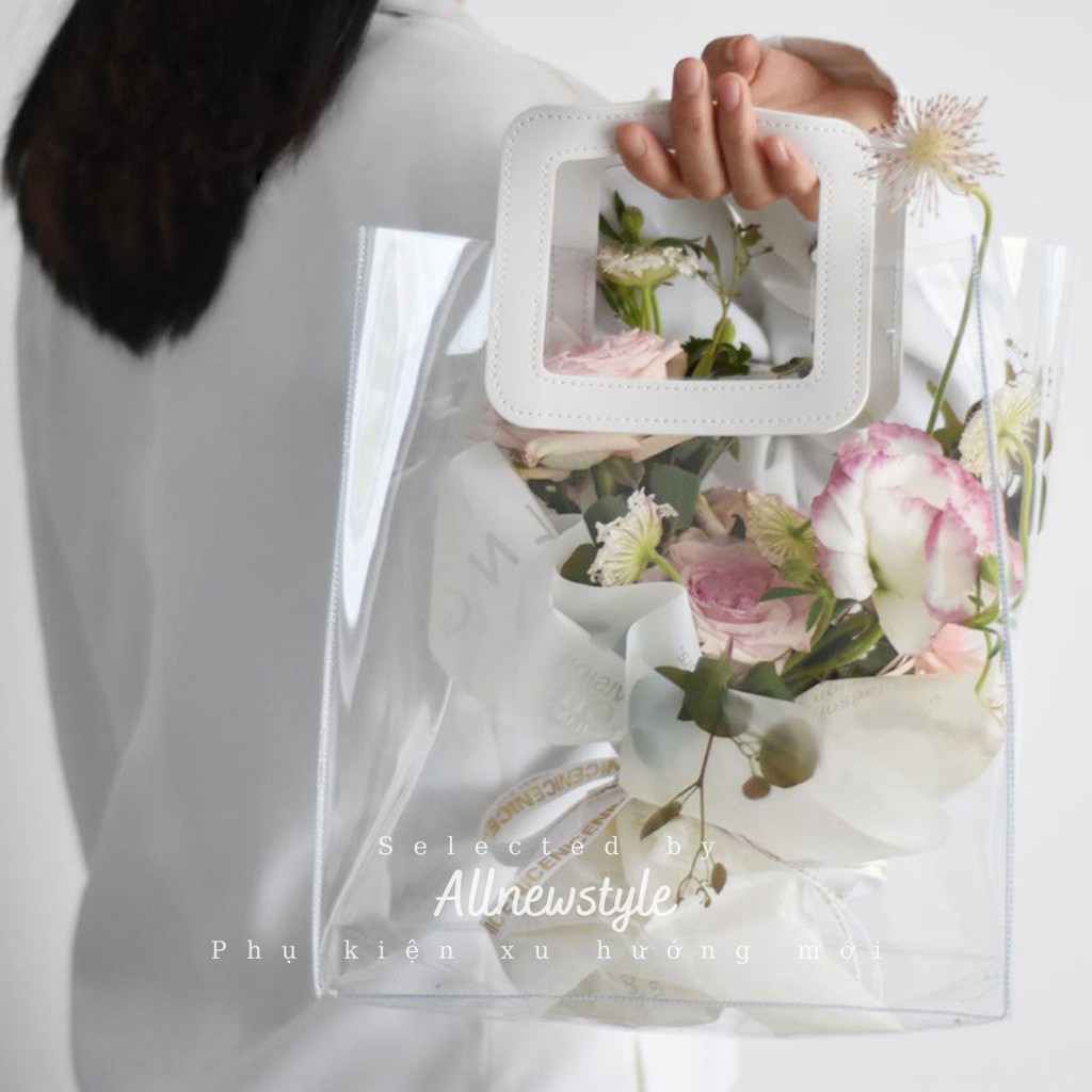 Giới thiệu [Màu mới] Túi PVC trong suốt dày tay cầm da làm túi xách/ quà tặng Allnewstyle