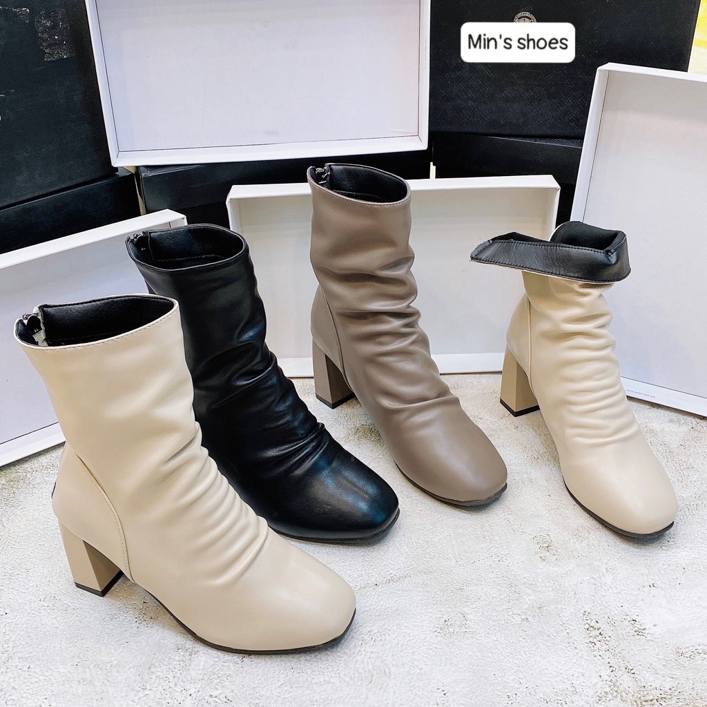 - Giày boot da mềm mại, dễ lau chùi, dáng bốt nhăn tạo sự nhỏ gọn cho đôi chân. Bên trong giày lót mút lông êm và ấm chân.