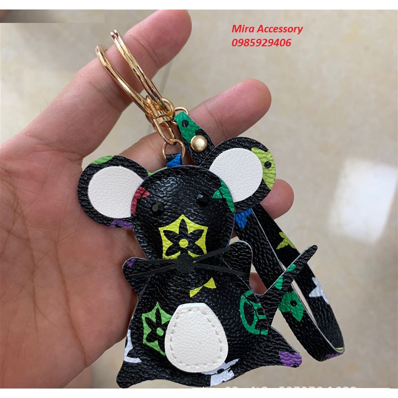 Túi Ví Nữ > Phụ kiện túi > Charm và phụ kiện gắn túi || Móc chìa khóa da hình chuột hoa văn treo trang trí túi xách, ba lô thời trang
