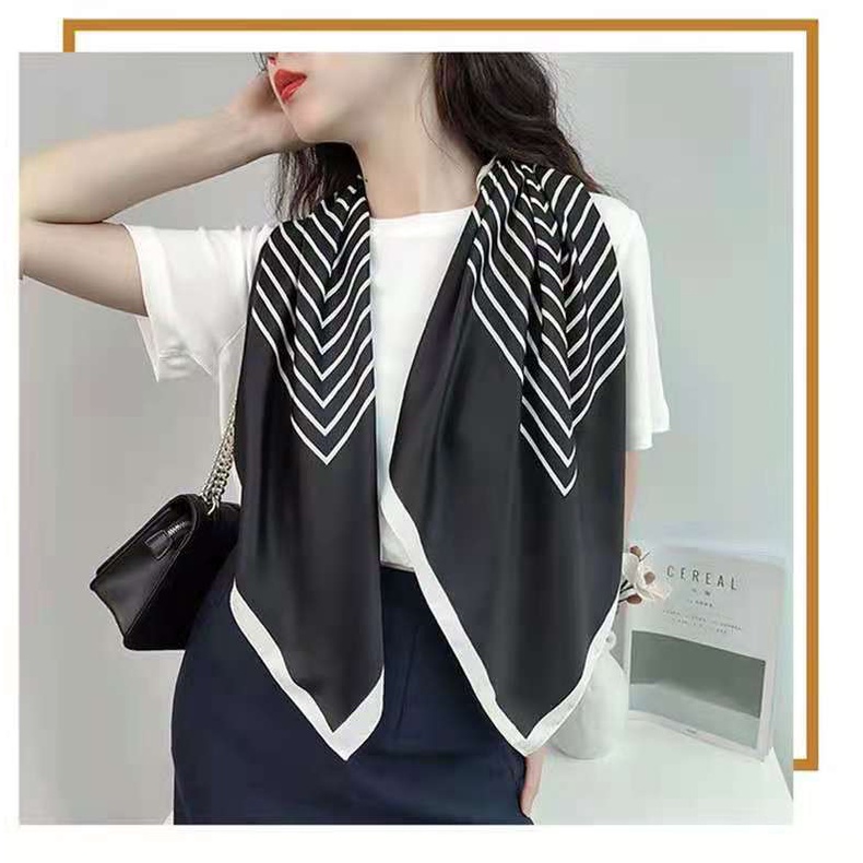 KHĂN LỤA bandana áo yếm KẺ NỀN ĐEN 90x90cm LÀM ÁO VẠT CHÉO HIỆN ĐẠI TRENDY cao cấp lụa ThyThy cột túi, đồng phục, mặc áo vest.nơ