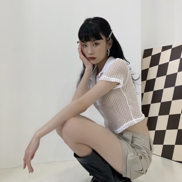 Thời Trang Nữ > Áo > Áo polo || MOODSWINGS - Áo lưới Mesh Polo Shirt