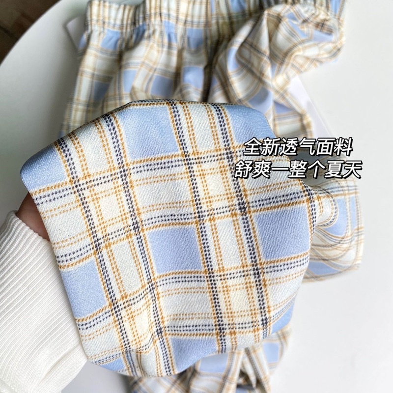 MS076 Quần suông ống rộng kẻ caro cạp chun