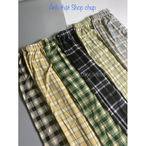 Thời Trang Nữ > Quần > Quần dài || MS076 Quần suông ống rộng kẻ caro cạp chun