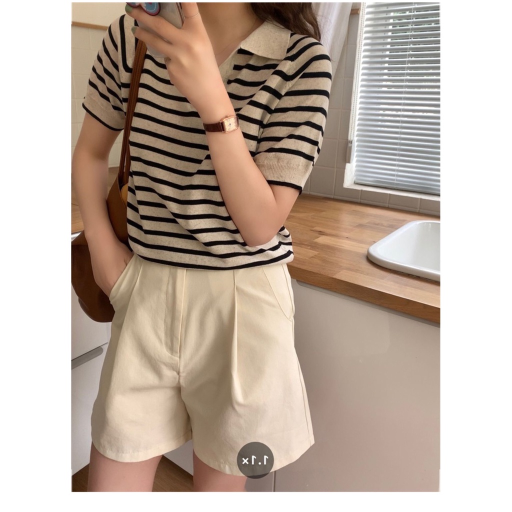 Thời Trang Nữ > Áo > Áo polo || MS191 Áo polo cổ bẻ kẻ ngang