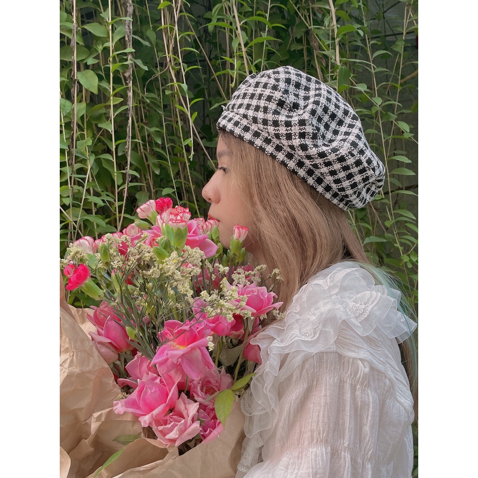 Mũ beret kẻ caro chất liệu dày dặn phong cách vintage