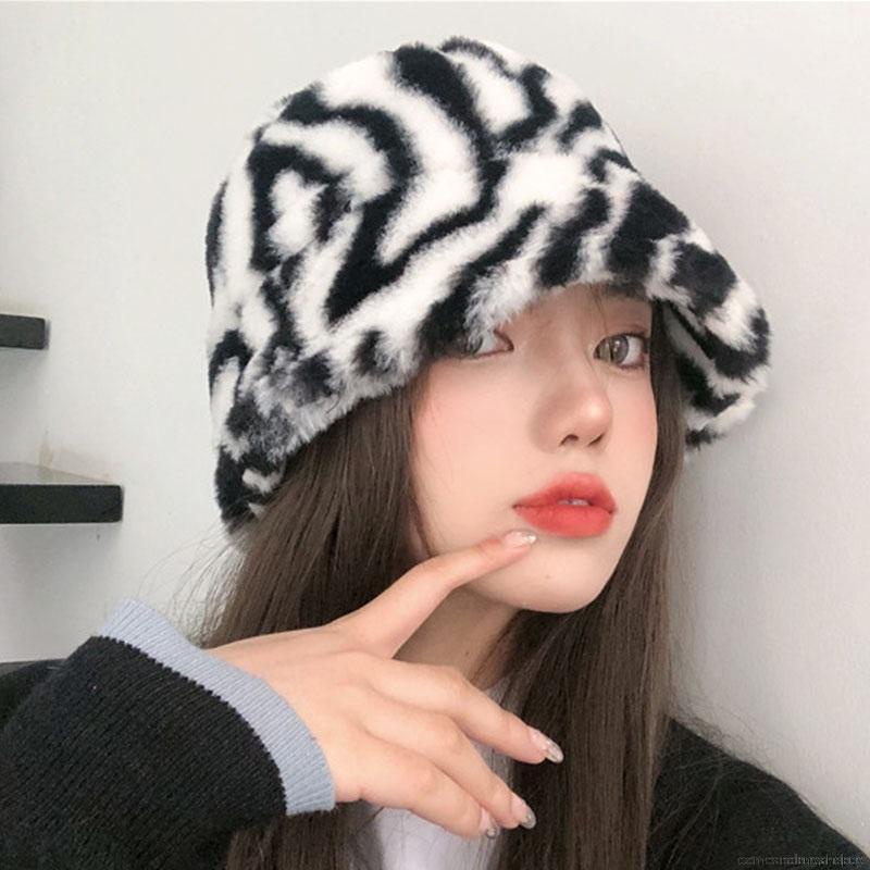 Giới thiệu Mũ Bucket lông thỏ dày dặn giữ ấm họa tiết ngựa vằn thời trang thu đông Hàn Quốc cho nữ