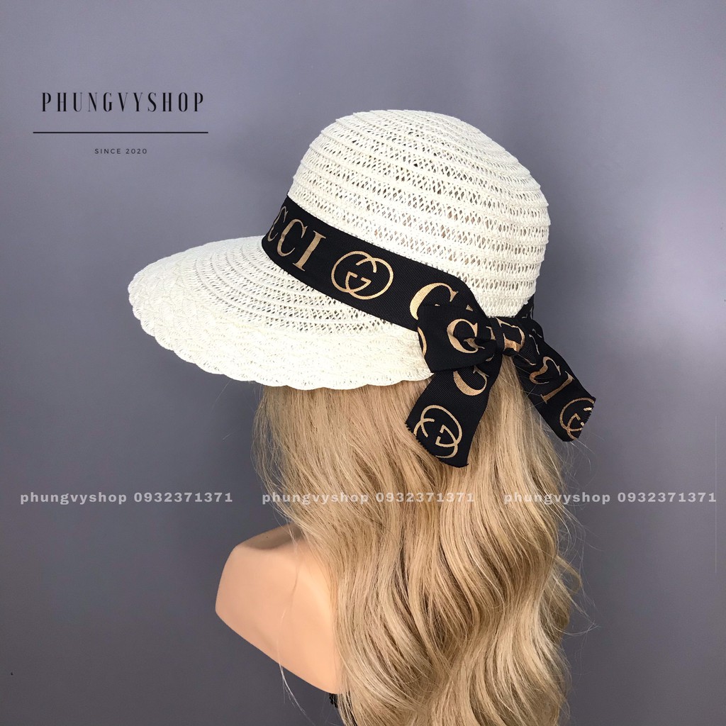 Giới thiệu Mũ cói đan hở sau dây nơ gc- nón cói đi biển