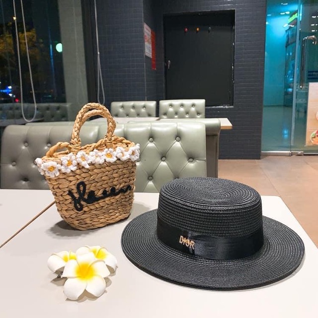 Mũ cói đi biển, nón cói vành nhỏ đai gắn tag dio sang chảnh