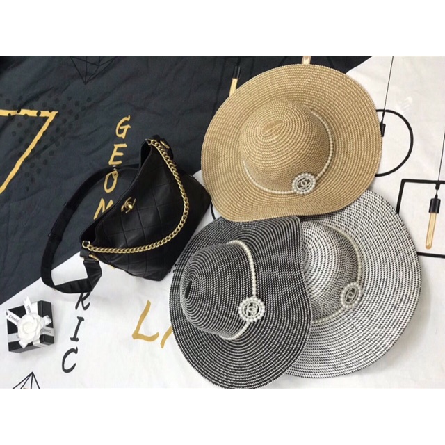 Mũ cói đi biển vành rộng dây nơ sang chảnh