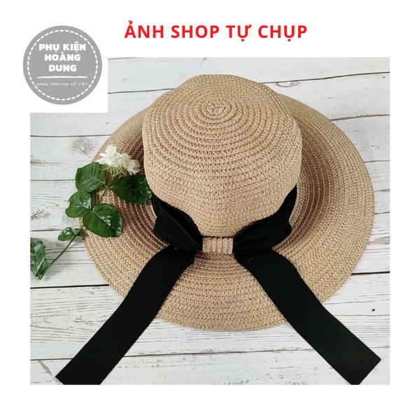 Mũ cói mềm đi biển, nón cói nữ vành rộng phối nơ sau phong cách vintage chống nắng