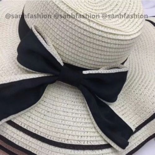 Mũ Cói Nơ Kép Lượn Bềnh Sóng Viền Đen Đi Biển Thời Trang Hót Trend 2021 C03