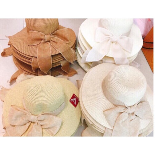 Phụ Kiện Thời Trang > Mũ || Mũ cói ( Nón cói) vành rộng phối nơ vải bố xinh xắn(SH8)