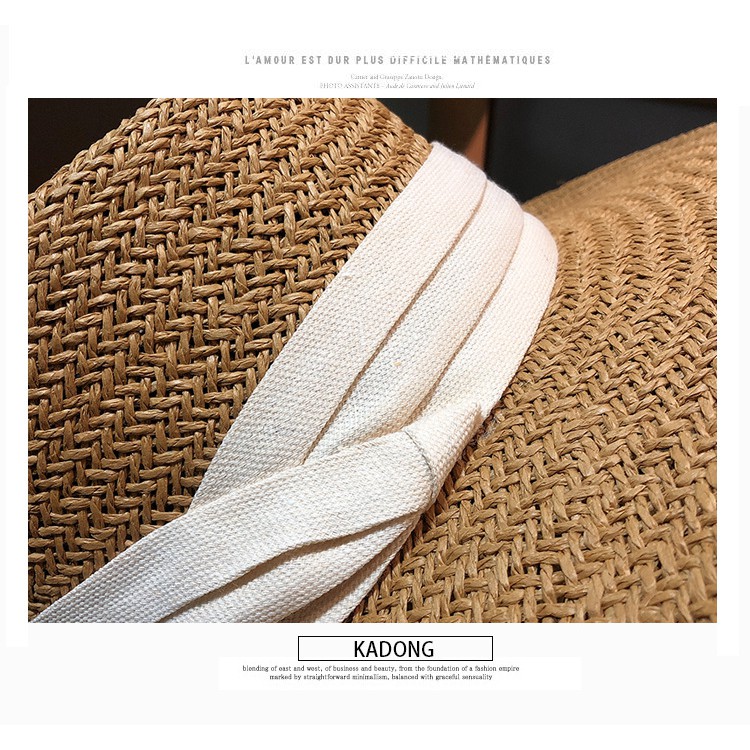Giới thiệu Mũ cói Panama Đi biển Rộng vành Vành ngang Gắn ruy băng Nón cói Panama Đi du lịch Mùa Hè Vành rộng Thắt nơ