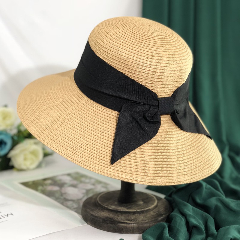 Mũ Cói Vành Cụp Nơ Đen Đi Biển