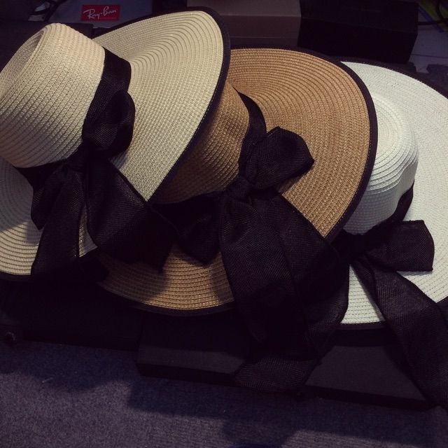 Mũ cói vành rộng viền đen nơ vải đen siêu xinh