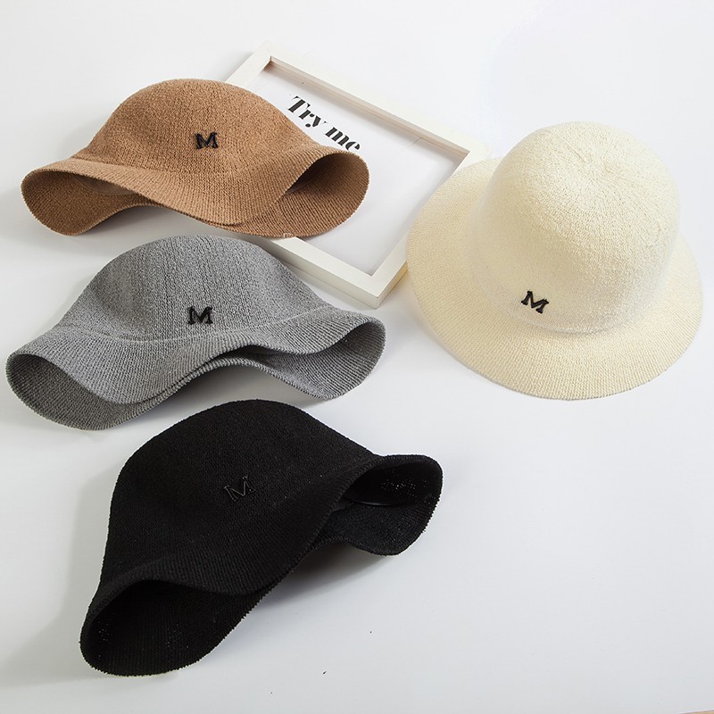 Mũ đi biển vành tròn gắn tag chư M nón móc len sợi rộng vành đi chơi siêu đẹp dành cho nữ.