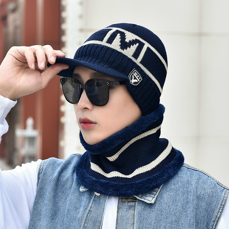 Giới thiệu MŨ LEN LƯỠI CHAI KÈM KHĂN NAM NỮ CHỮ M