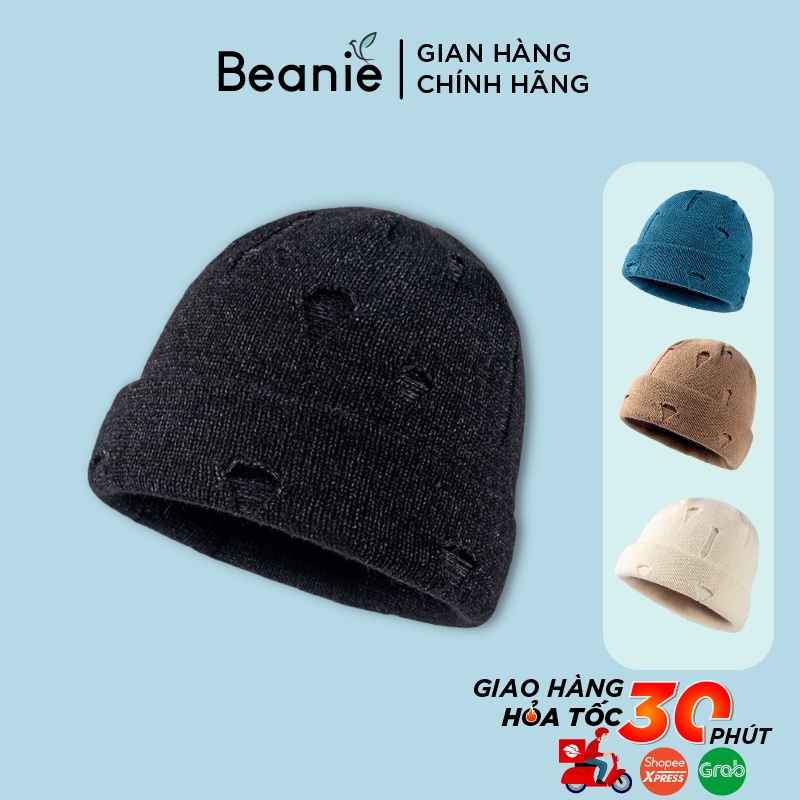 Mũ Len Thêu Rách BEANIE Hình Quả Dưa Giữ Ấm, Nón Len Mùa Đông Dành Cho Nam Nữ Dệt Kim Cao Cấp B023