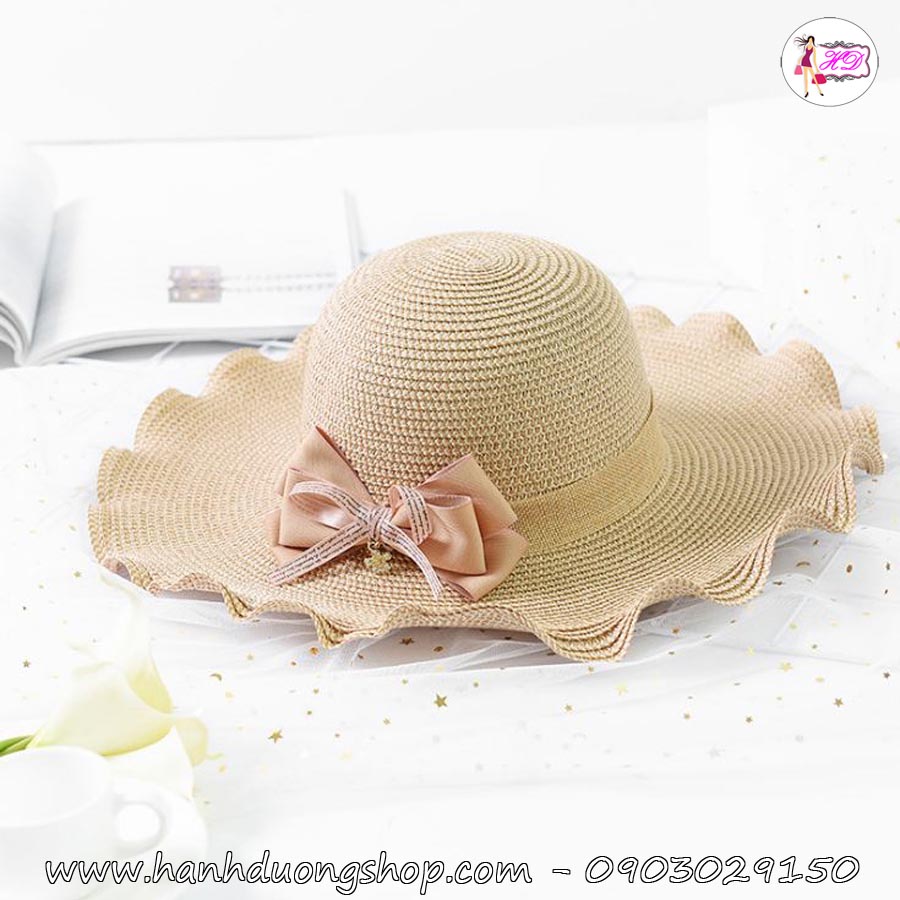 Mũ nấm đi biển dành cho nữ, thiết kế vành rộng kiểu gợn sóng chống nắng tốt, gắn nơ dễ thương, điệu đà - Hạnh Dương