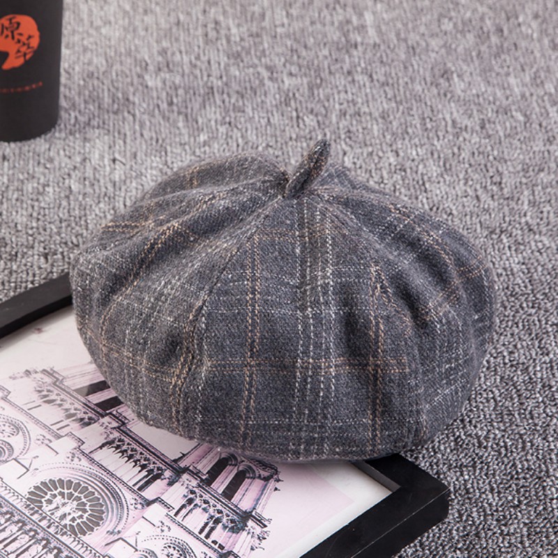 Phụ Kiện Thời Trang > Mũ || Mũ nồi beret caro có dây rút