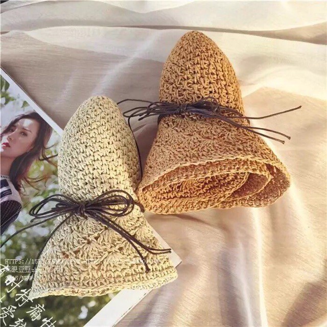 💛 Mũ cói mềm thắt nơ da xinh xắn, phụ kiện không thể thiếu khi đi dã ngoại, đi biển, chụp mẫu ảnh...