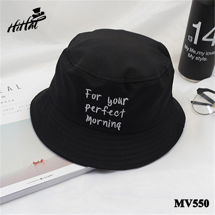 Giới thiệu Mũ tai bèo thêu chữ For your perfect morning siêu kute - màu đen