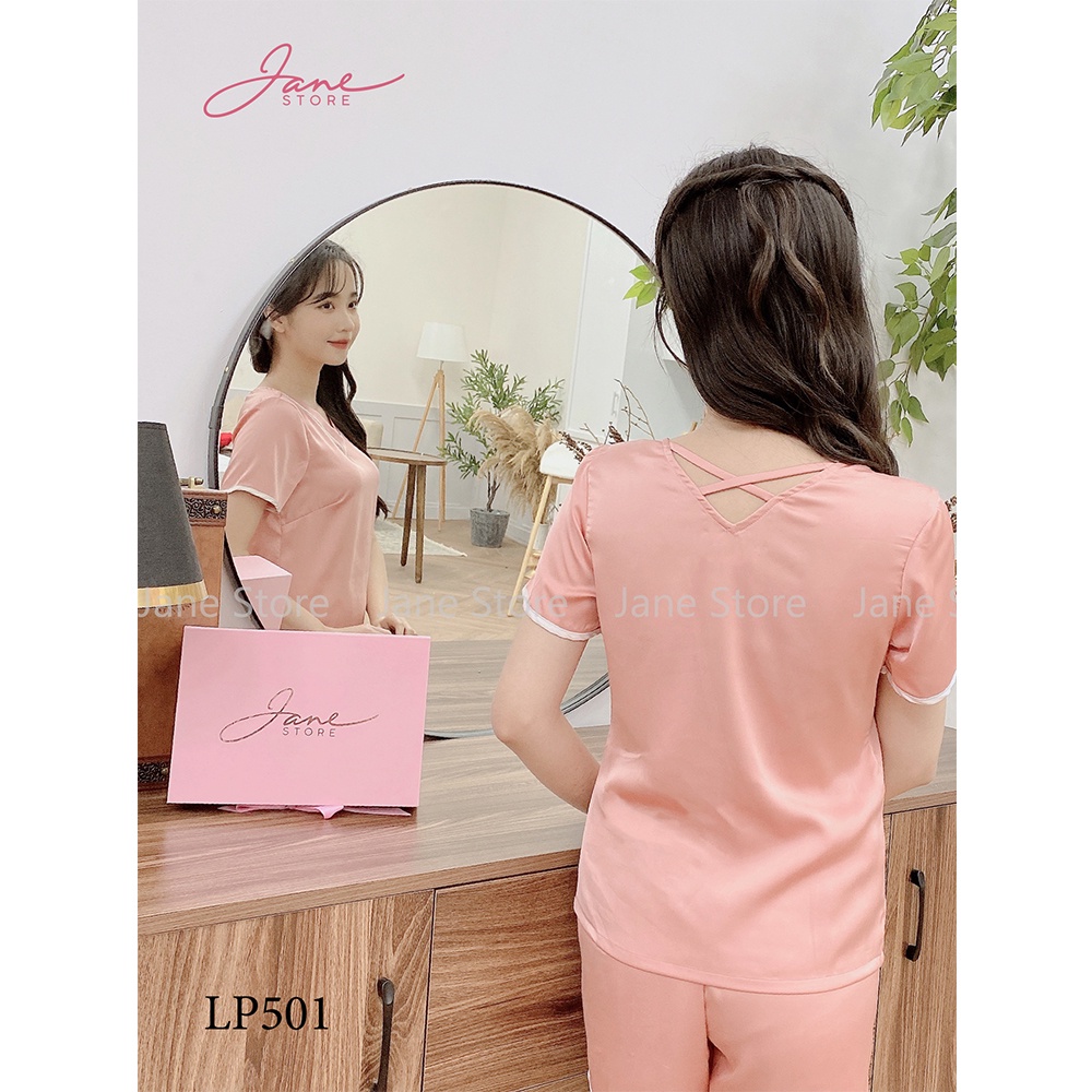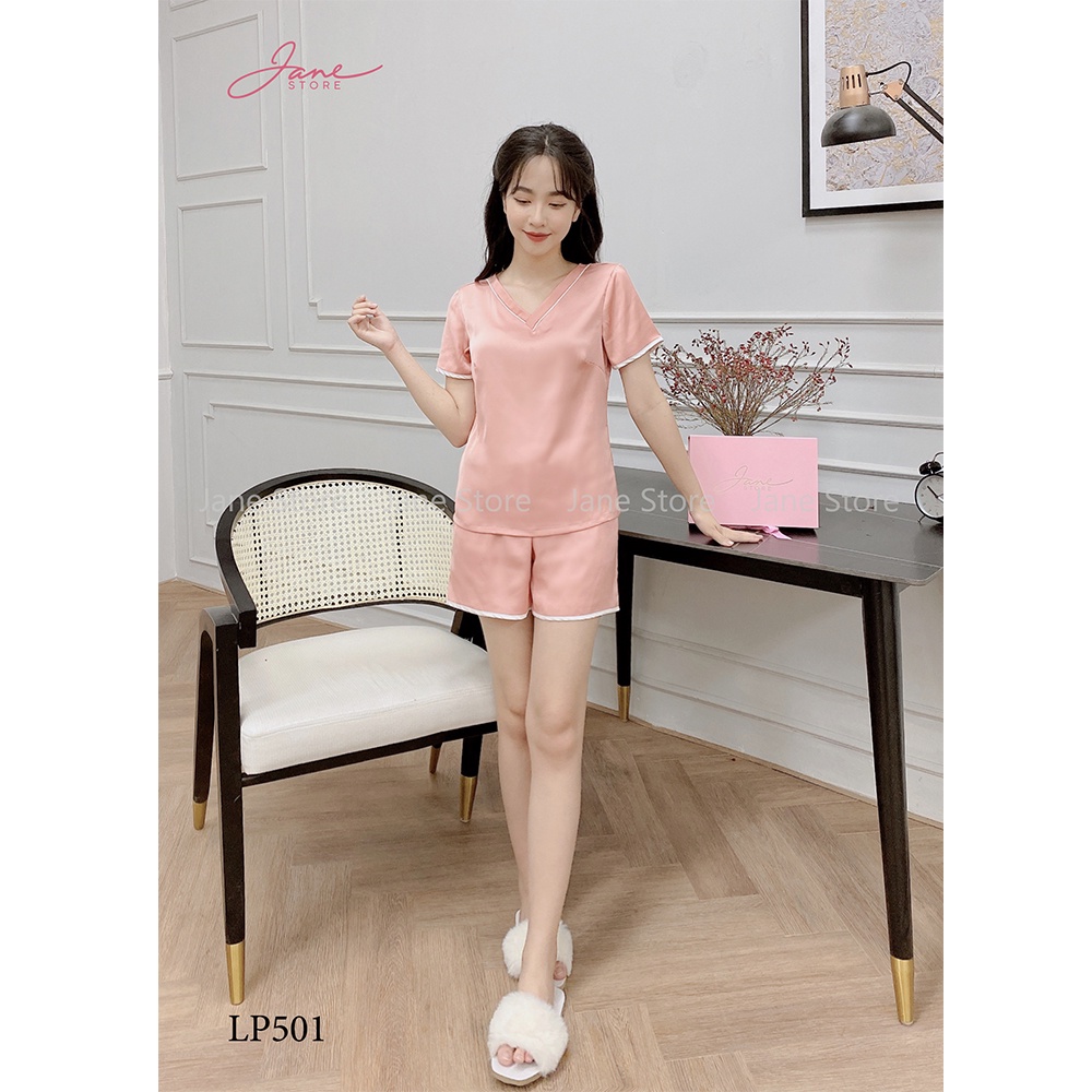 Giới thiệu Bộ ngủ cộc tay viền trắng Đồ ngủ nữ chất liệu Lụa Pháp cao cấp mềm mịn thoáng mát Jane mã LP50