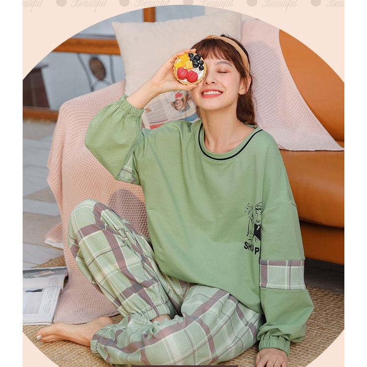 Đồ bộ mặc nhà, bộ đồ ngủ nữ cotton dài tay - bộ ngủ nữ siêu dễ thương