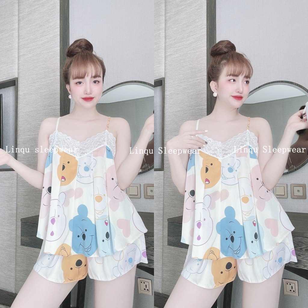 - Mô tả: Áo 2 dây phối ren, có tăng đơ. Kèm họa tiết dễ thương. Quần đùi mềm mát mặc ngủ thoải mái.