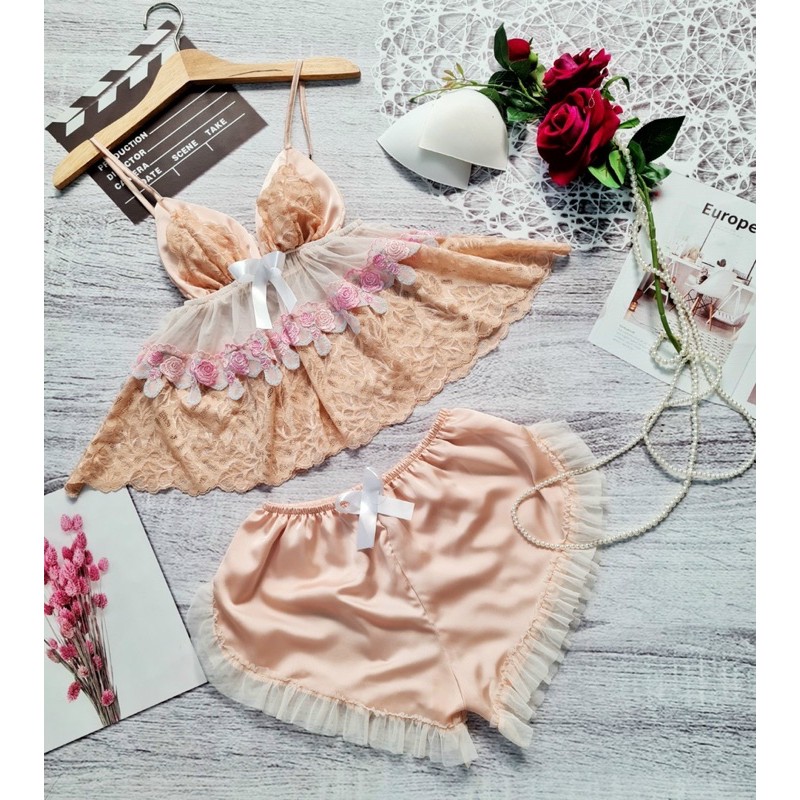 Giới thiệu Đồ ngủ sexy nữ - Đồ ngủ sexy nữ phối ren có mút gợi cảm Freesize dưới 60kg
