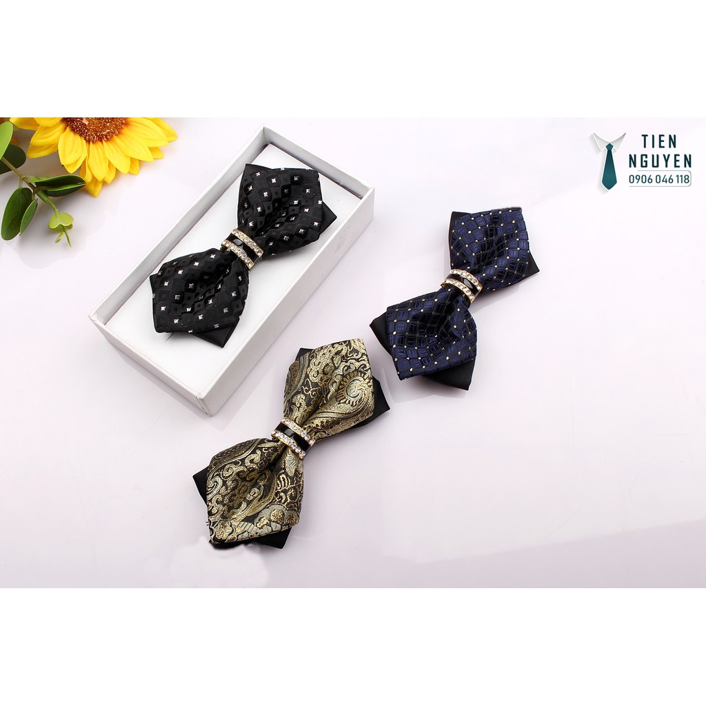 Giới thiệu Nơ đeo cổ nam chú rể, nơ cánh nhọn đính đá cao cấp Full box